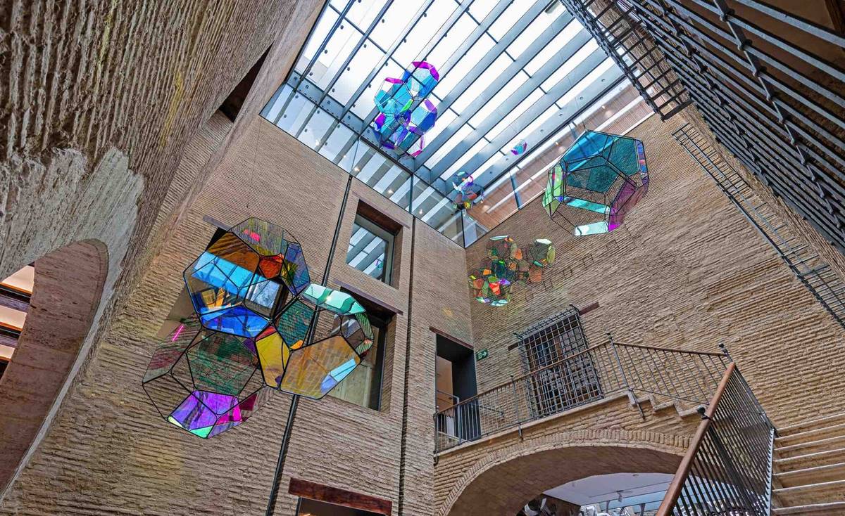 Una de las obras más fascinantes y fotografiadas es el túnel de 1.035 cristales de Olafur Eliasson realizada para el propio centro y que juega con los colores y la percepción del visitante, según la forma en la que incide la luz en cada uno de los cristales.