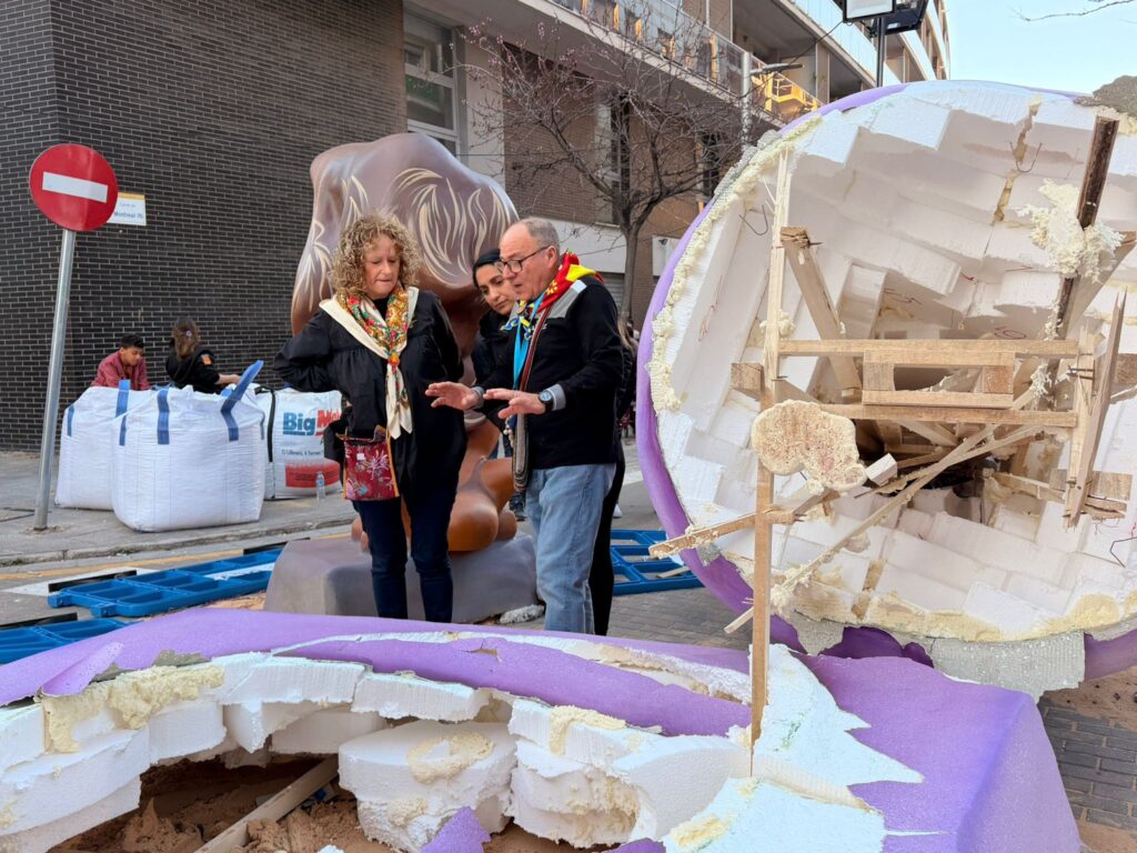 A la espera de que el artista Miguel March pueda desplazarse de nuevo al lugar para evaluar si es posible volver a levantar el cuerpo principal de la falla, la comisión ha tomado una decisión estratégica: centrar todos los esfuerzos en la plantà de la falla infantil. El objetivo es asegurar que, al menos, el monumento de los más pequeños quede completamente instalado y a salvo de nuevas rachas antes de la visita del jurado.