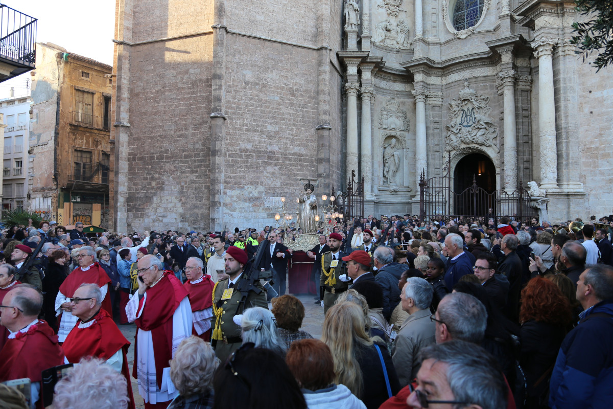 La más importante tendrá lugar a las 10:30 horas en la Catedral de Valencia. Al terminar, se desarrollará la procesión desde la Plaza de la Reina, en dirección calle de la Mar y final en plaza de la Almoina. Este acto central concluirá con una mascletá de pequeñas dimensiones en la Plaza de la Reina a las 13 horas.