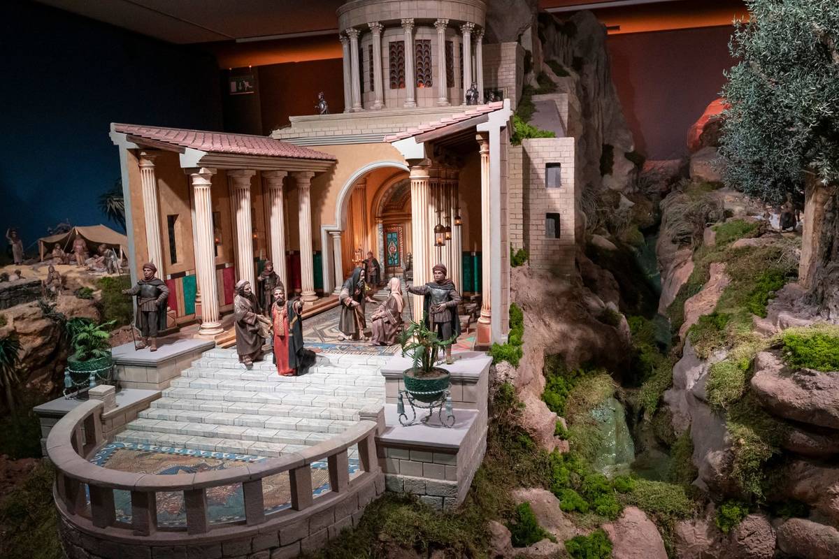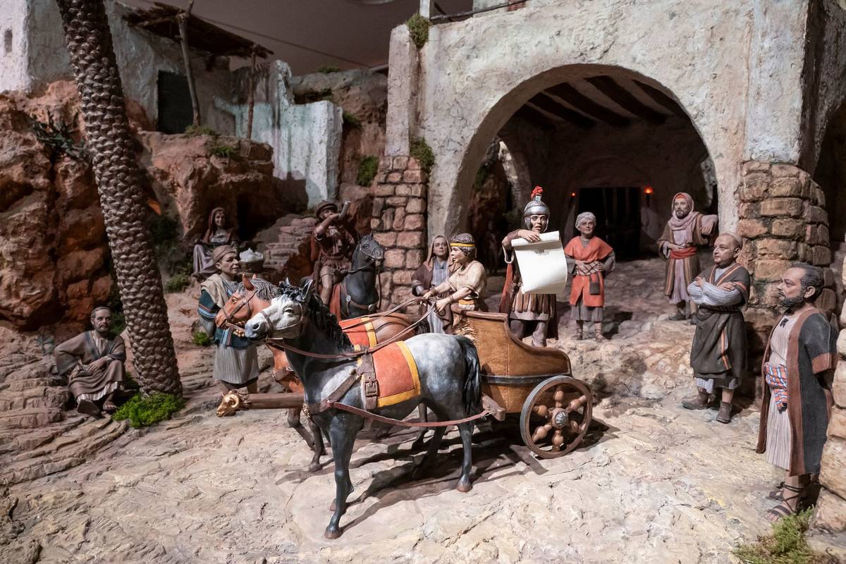 Este montaje, considerado uno de los más importantes de la imaginería navideña española, ofrece un recorrido cronológico por la vida de Jesús, desde la Anunciación en Nazaret hasta la Huida a Egipto.