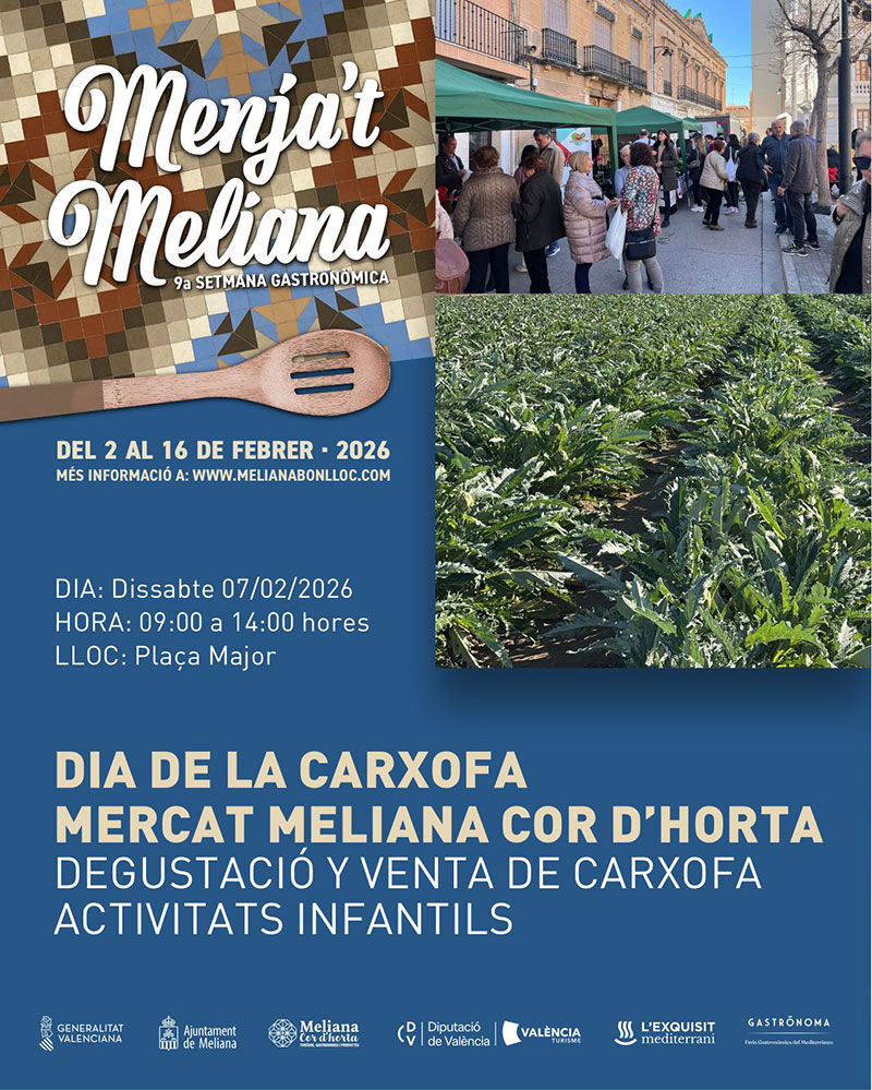 El primer plato fuerte llegará este sábado 7 de febrero de 9 a 14 horas con el Día de la Carxofa. La Plaça Major se transformará en el mercado «Meliana, Cor d’Horta», donde se podrán comprar verduras directamente a agricultor locales.